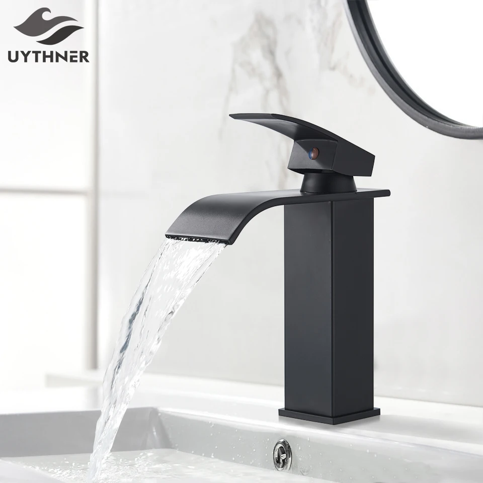 Best Bathroom Fixtures from uythner Store for Sink-Faucet Washbasin-Tap Cold-Water-Mixer Brass Bathroom Black Deck Mounted Hot