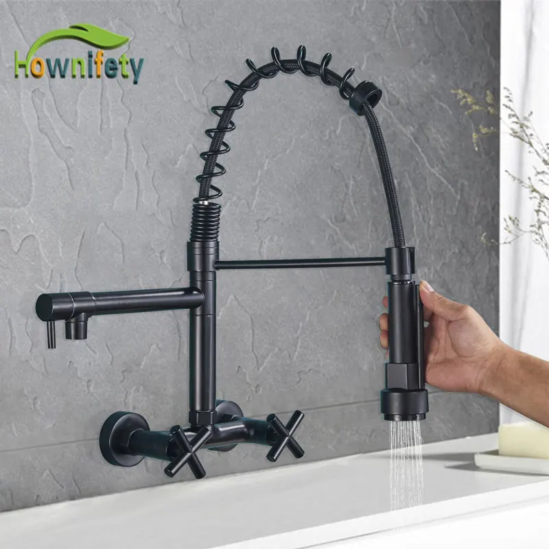 Name: Faucets Wall-Mount Dual-Handle Gold Kitchen Black Crane-Tap Pull-Down Cold-Mixer Chrome